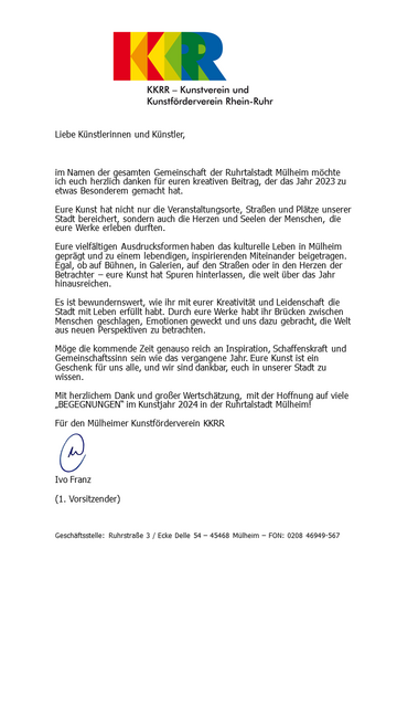 Liebe Künstlerinnen und Künstler, im Namen der gesamten Gemeinschaft der Ruhrtalstadt Mülheim möchte ich euch herzlich danken für euren kreativen Beitrag, der das Jahr 2023 zu etwas Besonderem gemacht hat. Eure Kunst hat nicht nur die Veranstaltungsorte, Straßen und Plätze unserer Stadt bereichert, sondern auch die Herzen und Seelen der Menschen, die eure Werke erleben durften. Eure vielfältigen Ausdrucksformen haben das kulturelle Leben in Mülheim geprägt und zu einem lebendigen,… Quelle: Lokalkompass